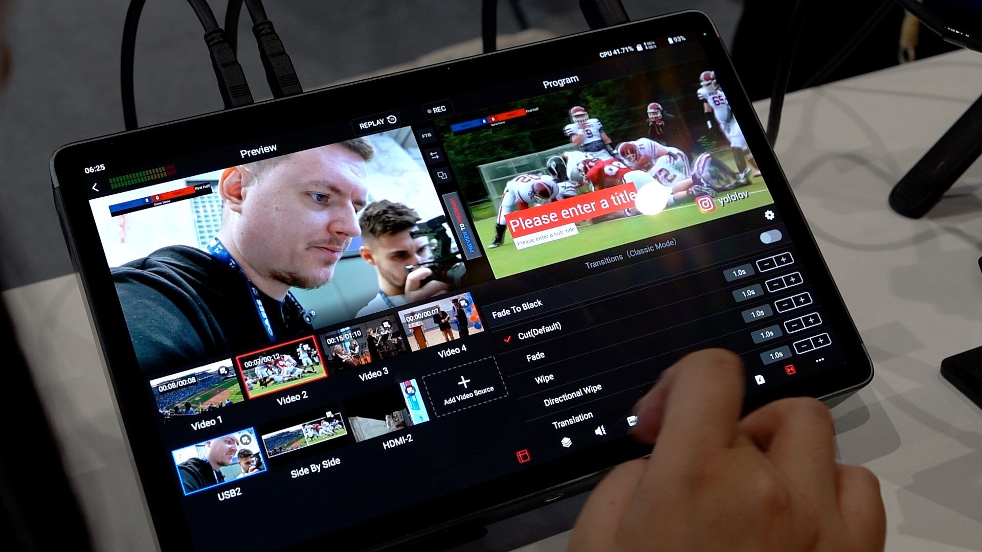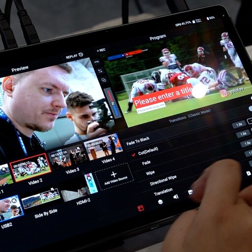 - Možnost vkládat grafiku, titulky nebo skóre pro sportovní přenosy přímo na dotykovém displeji.