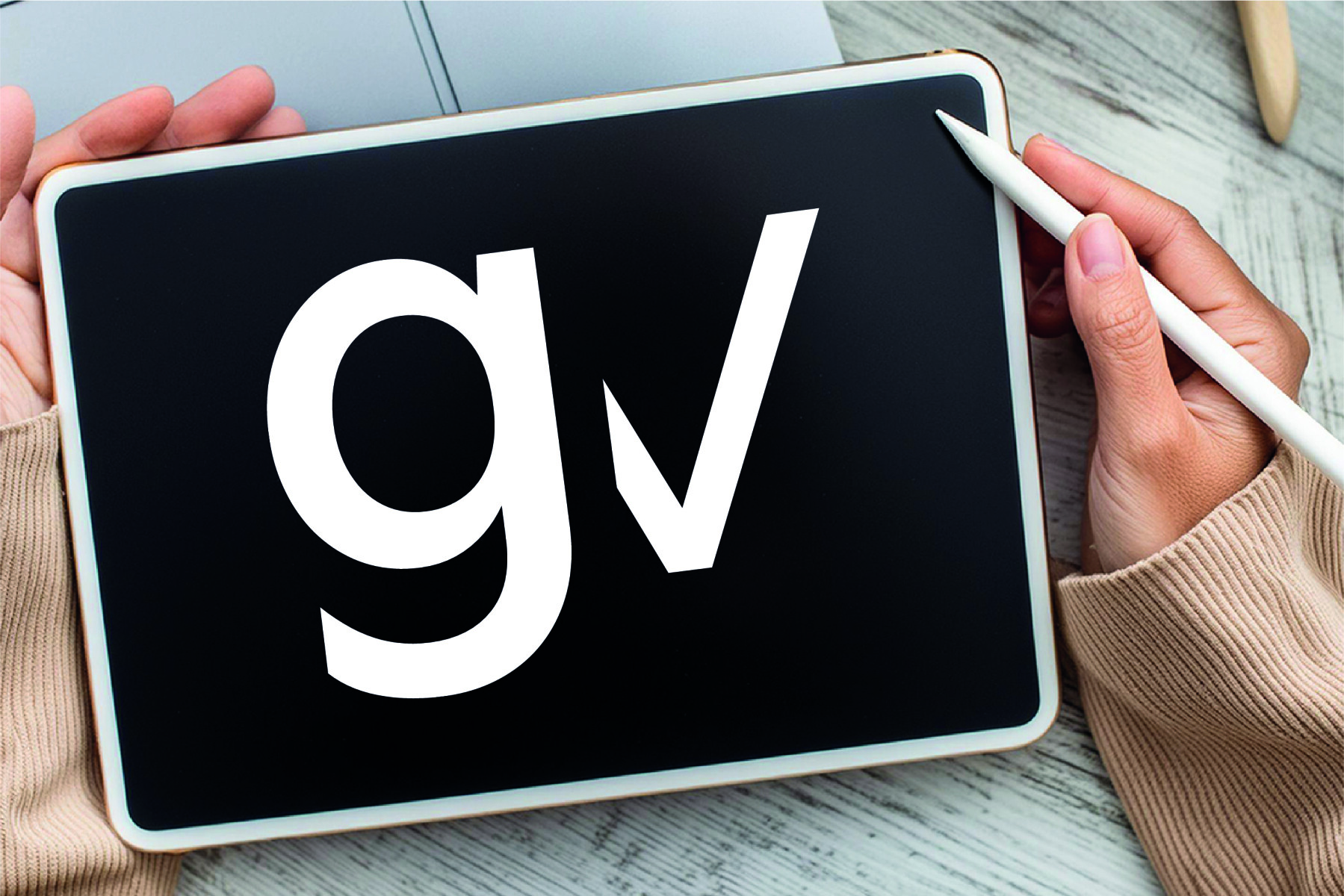 Piktogram „gv“: Náš minimalistický „podpis“. Kompaktní pečeť kvality, která funguje jako digitální vodoznak i stylový prvek na našem merchi.