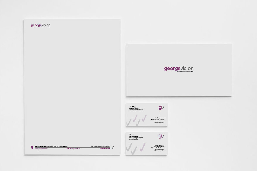 Vizuální identita georgevision však nekončí u loga. Klíčovým prvkem, který se prolíná celou naší tvorbou, je fragment seříznutého písmena „v“. Tento detail jsme povýšili na samostatný grafický symbol, který v sobě nese hlubší význam.