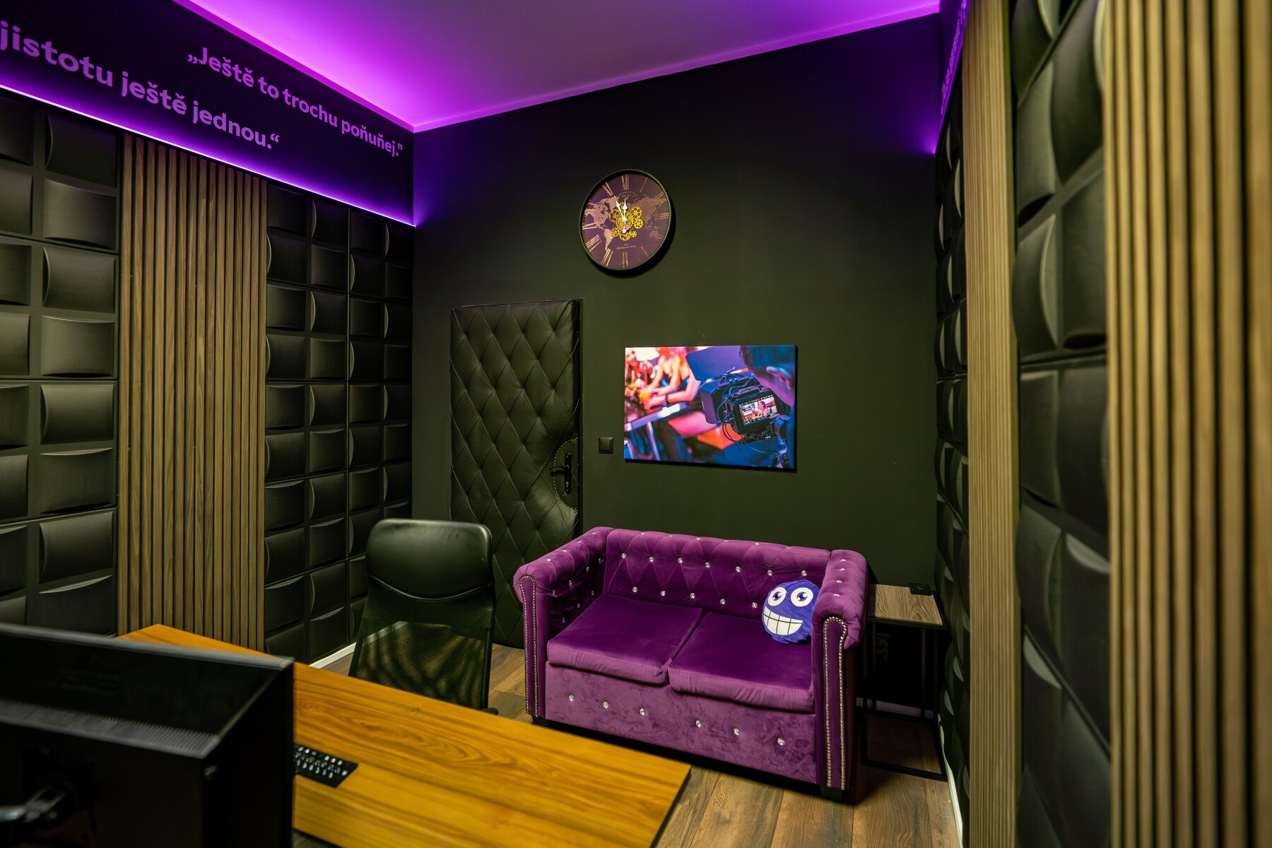 Klient je u toho s námi. Vidí změny v reálném čase, může okamžitě reagovat a ovlivnit výsledek. Díky tomu nevznikají zbytečné revize, ale jasná rozhodnutí, která posouvají projekt dopředu. Celý prostor je navržený tak, aby nic nerušilo soustředění. Kvalitní obraz, čistý zvuk a prostředí, kde se dá přemýšlet nad každým detailem. Protože právě tady se rozhoduje o tom, jak silný bude finální dojem.